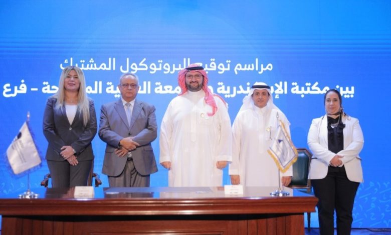وقالت إن التعاون مع مكتبة الإسكندرية يمثل خطوة واثقة نحو شراكة علمية وثقافية حقيقية بين ما لدى الجامعة من خبرات أكاديمية وما تمتلكه المكتبة من كنوز معرفية ومصادر بحثية لا تقدر بثمن، مما سيفتح آفاقا واسعة أمام الطلاب والباحثين ويتيح لهم الوصول لموارد ثرية بما يعزز قدرتهم ويؤهلهم ليكونوا فاعلين في تنمية مجتمعهم. وأضافت: “نؤمن أن ما نوقعه اليوم ليس مجرد بروتوكول تعاون بل عهد بالعمل المشترك والتزام بتسخير إمكاناتنا لخدمة أهداف عليا تتمثل في نشر العلم ودعم البحث وترسيخ قيم الثقافة والحوار، وبذلك نسهم في بناء جيل قادر على مواجهة تحديات الحاضر وصناعة المستقبل”.