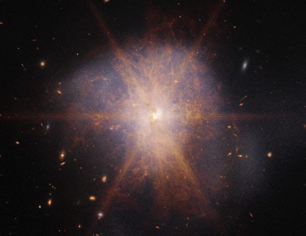 ويقول معهد (STScI) إن اصطدام مجرتين حلزونيتين واندماجهما شكل مجرة Arp 220 بدأ قبل 700 مليون سنة وأثار انفجارًا هائلاً بسبب احتواء كلتيهما على عدد ضخم للغاية من النجوم يبلغ نحو 200 عنقود نجمي ضخم.