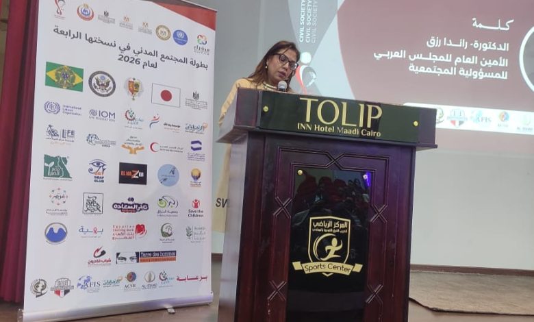 د راندا رزق : مشاركة المجلس العربي للمجتمع المدني تأتي انطلاقاً من رؤية استراتيجية لتعزيز التكامل بين مؤسسات المجتمع المدني . وتؤكد: بطولة المجتمع المدني منصة حقيقية لتعزيز ثقافة التطوع بما يتفق مع رؤية الدولة المصرية