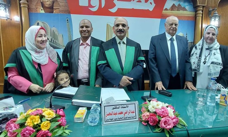 للباحث محمد عوض عبد الحميد وقد تشكلت لجنة المناقشة والحكم على الرسالة من السادة الأساتذة: ١. الأستاذ الدكتور محمد السيد الجليند أستاذ الفلسفة الإسلامية بالكلية( مناقشا) ٢. الأستاذ الدكتور ساميه عبد الرحمن أستاذ الفلسفة بكلية البنات جامعة عين شمس ( مناقشا ) ٣. عبد الراضي محمد عبد المحسن ( مشرفا ).