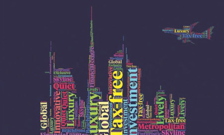 سألت «نايت فرانك» الأثرياء الذين شاركوا في استبيانها حول السوق العقاري في دبي، عن الكلمات التي تصف ما تعنيه لهم دبي، وقد استخدمت الشركة هذه الكلمات في تشكيل أبرز معالم المباني في دبي.
